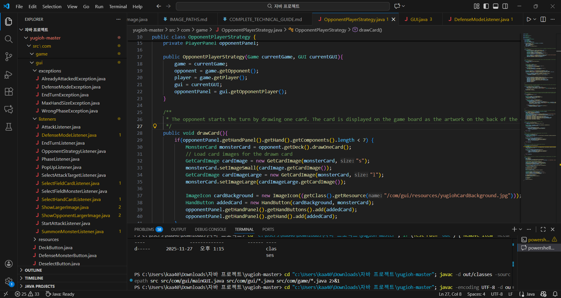 이 프로젝트는 유명한 트레이딩 카드 게임(유희왕)을 Java로 구현한 PC 버전 게임입니다. 단순한 학습 프로젝트를 넘어 실제 배포 가능한 완성 소프트웨어로 제작되었습니다.